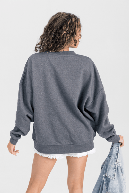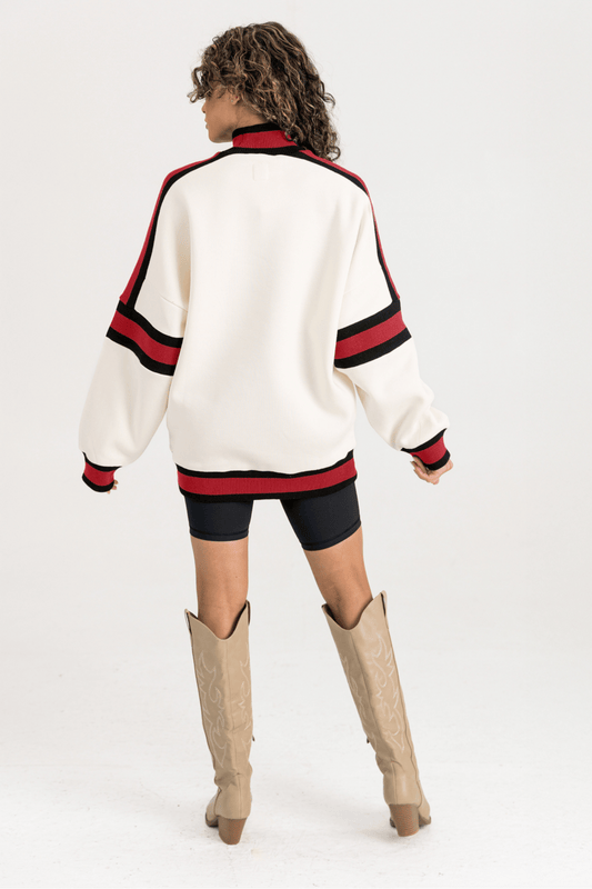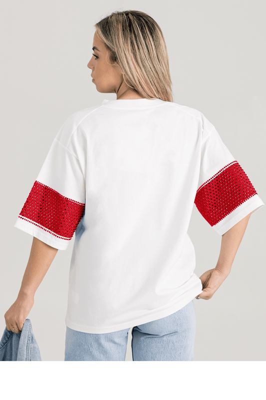 BIXBY RED FOOTBALL EMBELLISHED STAR SLEEVE CREWNECK SWEATSHIRT