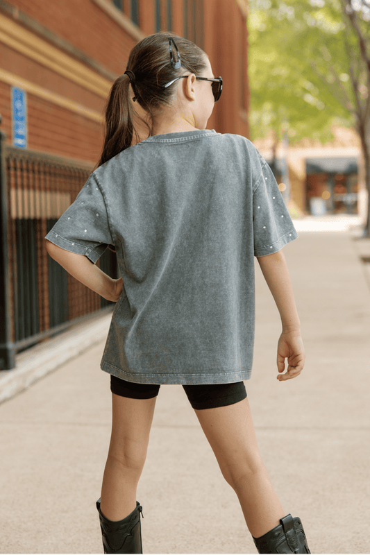 BIXBY SPARTANS YOUTH RHINESTONE VINTAGE WASH BOYFRIEND TEE