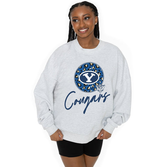 BYU COUGARS GOING WILD LONG SLEEVE UNISEX FIT PREMIUM FLEECE CREWNECK SWEATSHIRT WITH RIBBED KNIT NECKLINE, WRIST, AND WAISTBAND