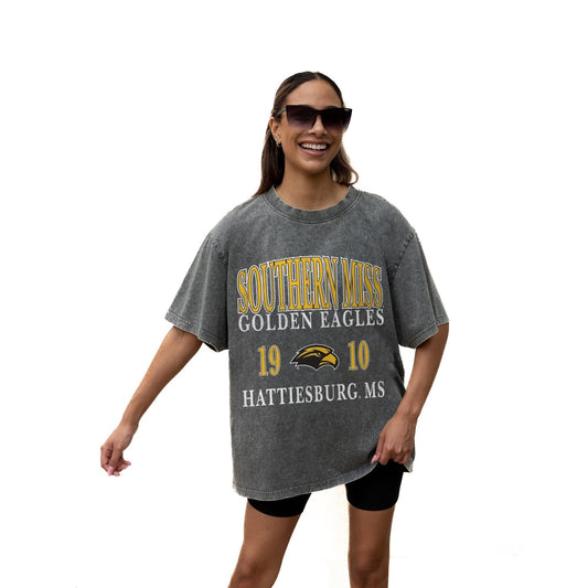 SOUTHERN MISS GOLDEN EAGLES THROWBACK RELAXED FIT SNOW WASH SHORT SLEEVE CLASSIC CREWNECK TEE WITH RIBBED NECKLINE