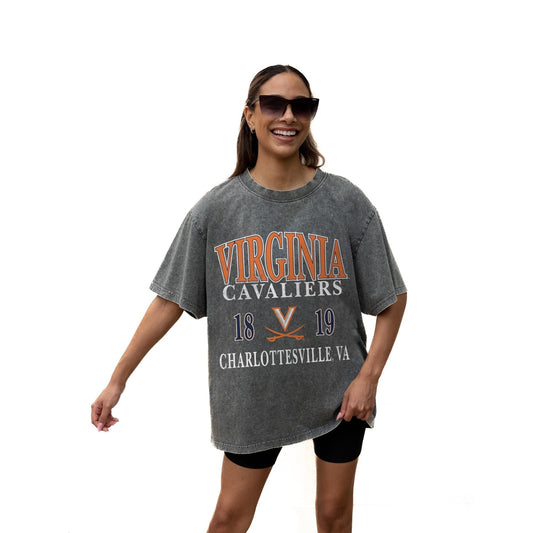 VIRGINIA CAVALIERS THROWBACK RELAXED FIT SNOW WASH SHORT SLEEVE CLASSIC CREWNECK TEE WITH RIBBED NECKLINE
