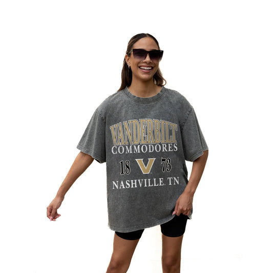 VANDERBILT COMMODORES THROWBACK RELAXED FIT SNOW WASH SHORT SLEEVE CLASSIC CREWNECK TEE WITH RIBBED NECKLINE