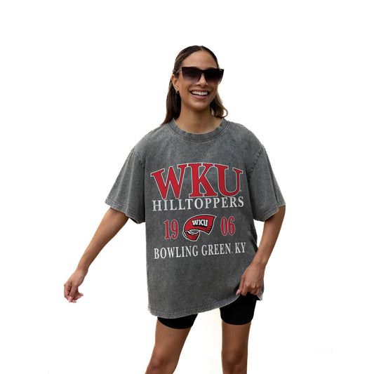WESTERN KENTUCKY HILLTOPPERS THROWBACK RELAXED FIT SNOW WASH SHORT SLEEVE CLASSIC CREWNECK TEE WITH RIBBED NECKLINE