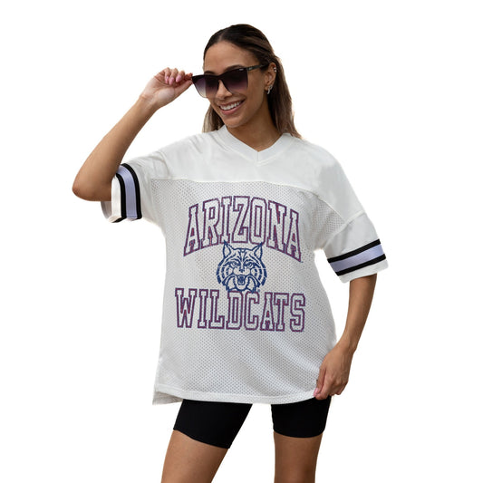 ARIZONA WILDCATS A STEP AHEAD ICONIC OVERSIZED MESH SHORT SLEEVE V-NECK FASHION JERSEY TOP WITH SIDE SLITS