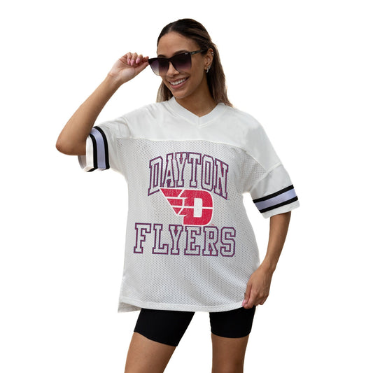 DAYTON FLYERS A STEP AHEAD ICONIC OVERSIZED MESH SHORT SLEEVE V-NECK FASHION JERSEY TOP WITH SIDE SLITS