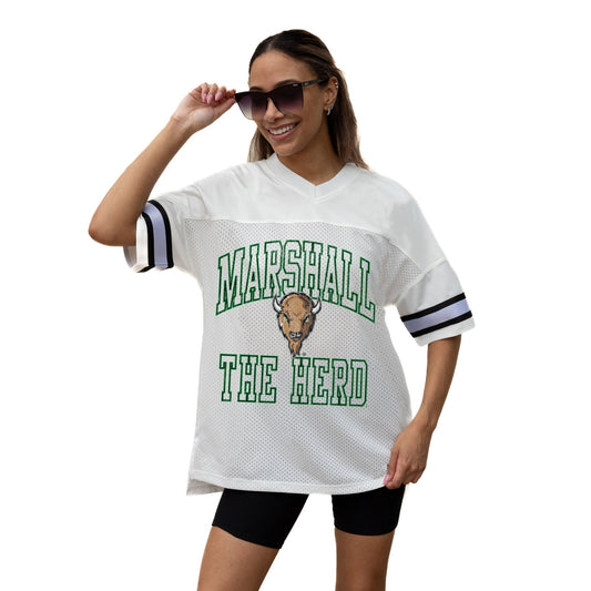 MARSHALL THUNDERING HERD A STEP AHEAD ICONIC OVERSIZED MESH SHORT SLEEVE V-NECK FASHION JERSEY TOP WITH SIDE SLITS