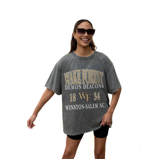 WAKE FOREST DEMON DEACONS THROWBACK RELAXED FIT SNOW WASH SHORT SLEEVE CLASSIC CREWNECK TEE WITH RIBBED NECKLINE