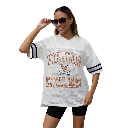 VIRGINIA CAVALIERS A STEP AHEAD ICONIC OVERSIZED MESH SHORT SLEEVE V-NECK FASHION JERSEY TOP WITH SIDE SLITS