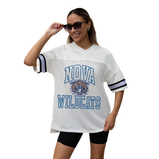VILLANOVA WILDCATS A STEP AHEAD ICONIC OVERSIZED MESH SHORT SLEEVE V-NECK FASHION JERSEY TOP WITH SIDE SLITS