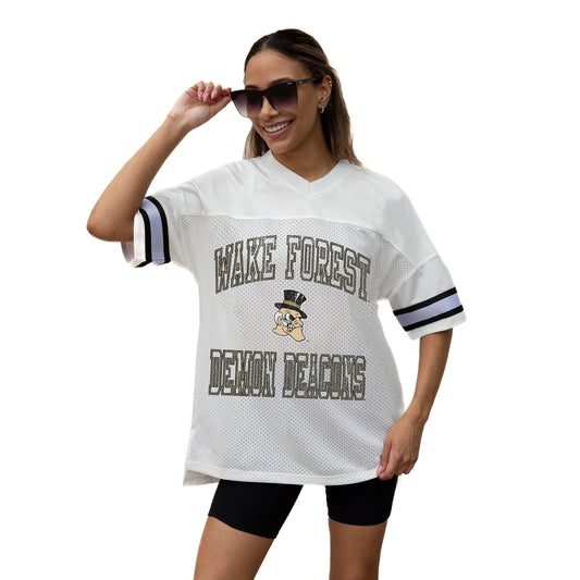 WAKE FOREST DEMON DEACONS A STEP AHEAD ICONIC OVERSIZED MESH SHORT SLEEVE V-NECK FASHION JERSEY TOP WITH SIDE SLITS