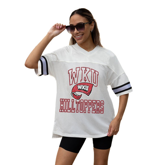 WESTERN KENTUCKY HILLTOPPERS A STEP AHEAD ICONIC OVERSIZED MESH SHORT SLEEVE V-NECK FASHION JERSEY TOP WITH SIDE SLITS