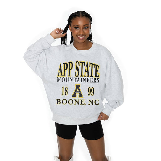 APPALACHIAN STATE MOUNTAINEERS ALLEGIANCE LONG SLEEVE UNISEX FIT PREMIUM FLEECE CREWNECK SWEATSHIRT WITH RIBBED KNIT NECKLINE, WRIST, AND WAISTBAND