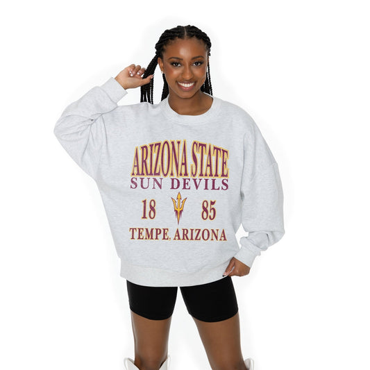 ARIZONA STATE SUN DEVILS ALLEGIANCE LONG SLEEVE UNISEX FIT PREMIUM FLEECE CREWNECK SWEATSHIRT WITH RIBBED KNIT NECKLINE, WRIST, AND WAISTBAND