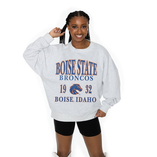BOISE STATE BRONCOS ALLEGIANCE LONG SLEEVE UNISEX FIT PREMIUM FLEECE CREWNECK SWEATSHIRT WITH RIBBED KNIT NECKLINE, WRIST, AND WAISTBAND