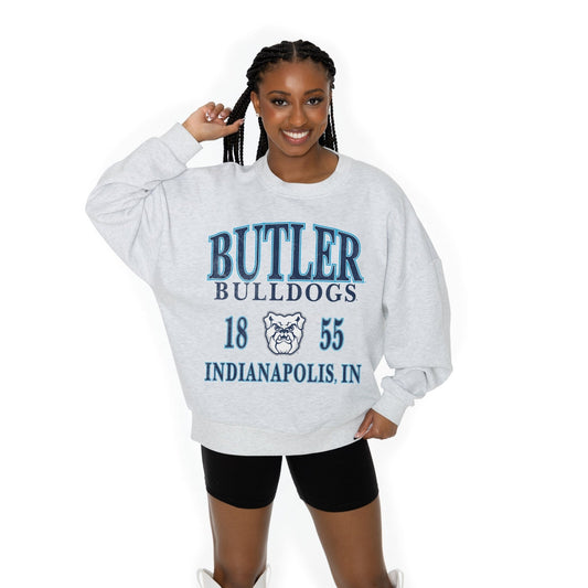 BUTLER BULLDOGS ALLEGIANCE LONG SLEEVE UNISEX FIT PREMIUM FLEECE CREWNECK SWEATSHIRT WITH RIBBED KNIT NECKLINE, WRIST, AND WAISTBAND
