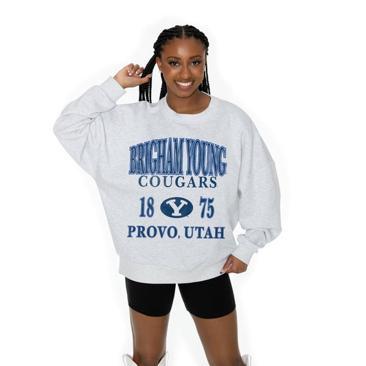 BYU COUGARS ALLEGIANCE LONG SLEEVE UNISEX FIT PREMIUM FLEECE CREWNECK SWEATSHIRT WITH RIBBED KNIT NECKLINE, WRIST, AND WAISTBAND