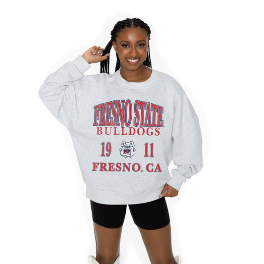 FRESNO STATE BULLDOGS ALLEGIANCE LONG SLEEVE UNISEX FIT PREMIUM FLEECE CREWNECK SWEATSHIRT WITH RIBBED KNIT NECKLINE, WRIST, AND WAISTBAND