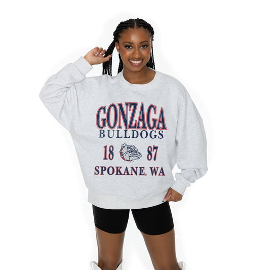 GONZAGA BULLDOGS ALLEGIANCE LONG SLEEVE UNISEX FIT PREMIUM FLEECE CREWNECK SWEATSHIRT WITH RIBBED KNIT NECKLINE, WRIST, AND WAISTBAND