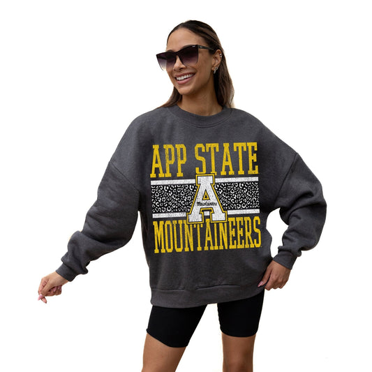 APPALACHIAN STATE MOUNTAINEERS WILD TAILGATE LONG SLEEVE UNISEX FIT PREMIUM FLEECE CREWNECK SWEATSHIRT WITH RIBBED KNIT NECKLINE, WRIST, AND WAISTBAND