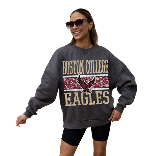 BOSTON COLLEGE EAGLES WILD TAILGATE LONG SLEEVE UNISEX FIT PREMIUM FLEECE CREWNECK SWEATSHIRT WITH RIBBED KNIT NECKLINE, WRIST, AND WAISTBAND