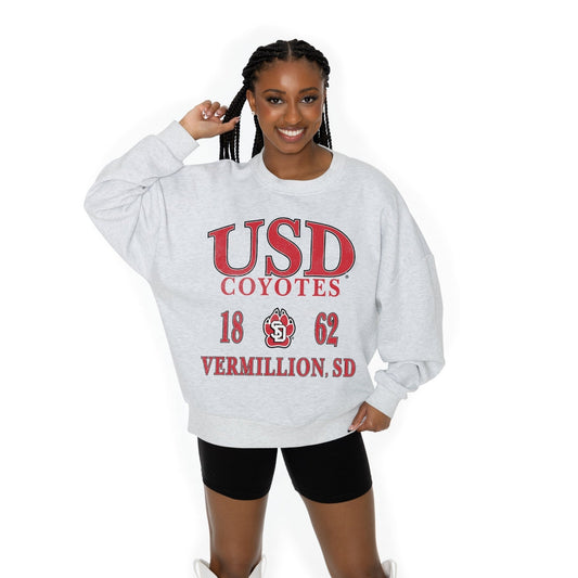 SOUTH DAKOTA COYOTES ALLEGIANCE LONG SLEEVE UNISEX FIT PREMIUM FLEECE CREWNECK SWEATSHIRT WITH RIBBED KNIT NECKLINE, WRIST, AND WAISTBAND