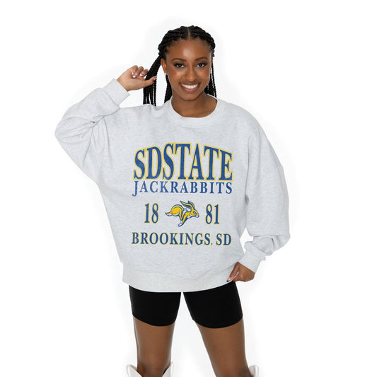 SOUTH DAKOTA STATE JACKRABBITS ALLEGIANCE LONG SLEEVE UNISEX FIT PREMIUM FLEECE CREWNECK SWEATSHIRT WITH RIBBED KNIT NECKLINE, WRIST, AND WAISTBAND