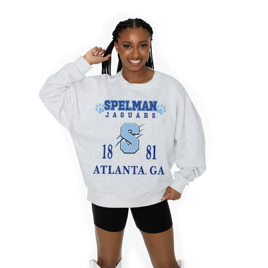 SPELMAN COLLEGE JAGUARS ALLEGIANCE LONG SLEEVE UNISEX FIT PREMIUM FLEECE CREWNECK SWEATSHIRT WITH RIBBED KNIT NECKLINE, WRIST, AND WAISTBAND
