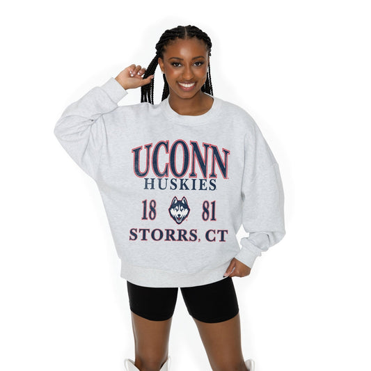 UCONN HUSKIES ALLEGIANCE LONG SLEEVE UNISEX FIT PREMIUM FLEECE CREWNECK SWEATSHIRT WITH RIBBED KNIT NECKLINE, WRIST, AND WAISTBAND
