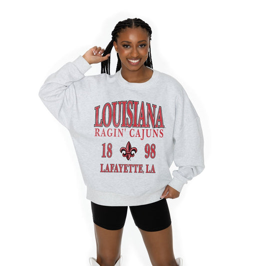 LOUISIANA RAGIN' CAJUNS ALLEGIANCE LONG SLEEVE UNISEX FIT PREMIUM FLEECE CREWNECK SWEATSHIRT WITH RIBBED KNIT NECKLINE, WRIST, AND WAISTBAND