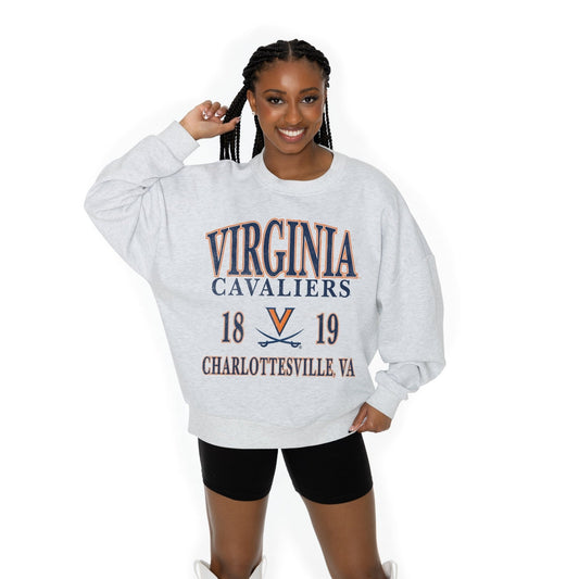 VIRGINIA CAVALIERS ALLEGIANCE LONG SLEEVE UNISEX FIT PREMIUM FLEECE CREWNECK SWEATSHIRT WITH RIBBED KNIT NECKLINE, WRIST, AND WAISTBAND