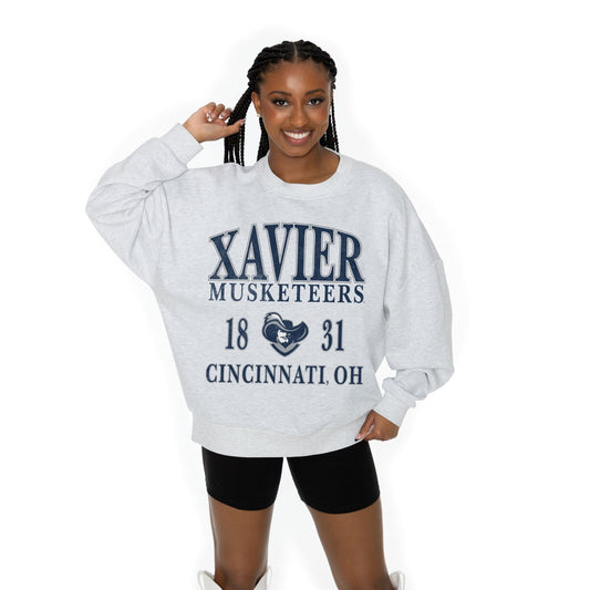 XAVIER MUSKETEERS ALLEGIANCE LONG SLEEVE UNISEX FIT PREMIUM FLEECE CREWNECK SWEATSHIRT WITH RIBBED KNIT NECKLINE, WRIST, AND WAISTBAND