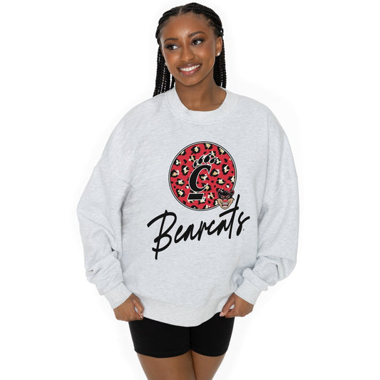 CINCINNATI BEARCATS GOING WILD LONG SLEEVE UNISEX FIT PREMIUM FLEECE CREWNECK SWEATSHIRT WITH RIBBED KNIT NECKLINE, WRIST, AND WAISTBAND