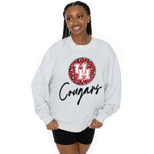 HOUSTON COUGARS GOING WILD LONG SLEEVE UNISEX FIT PREMIUM FLEECE CREWNECK SWEATSHIRT WITH RIBBED KNIT NECKLINE, WRIST, AND WAISTBAND