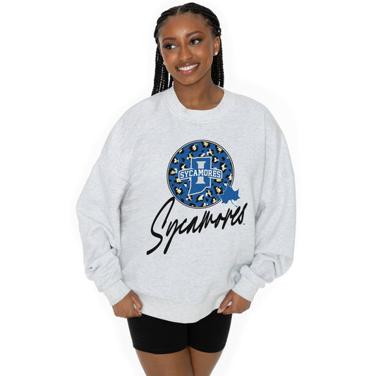 INDIANA STATE SYCAMORES GOING WILD LONG SLEEVE UNISEX FIT PREMIUM FLEECE CREWNECK SWEATSHIRT WITH RIBBED KNIT NECKLINE, WRIST, AND WAISTBAND