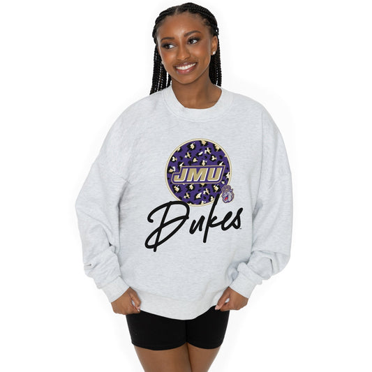 JAMES MADISON DUKES GOING WILD LONG SLEEVE UNISEX FIT PREMIUM FLEECE CREWNECK SWEATSHIRT WITH RIBBED KNIT NECKLINE, WRIST, AND WAISTBAND