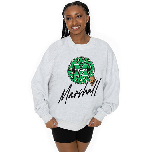 MARSHALL THUNDERING HERD GOING WILD LONG SLEEVE UNISEX FIT PREMIUM FLEECE CREWNECK SWEATSHIRT WITH RIBBED KNIT NECKLINE, WRIST, AND WAISTBAND