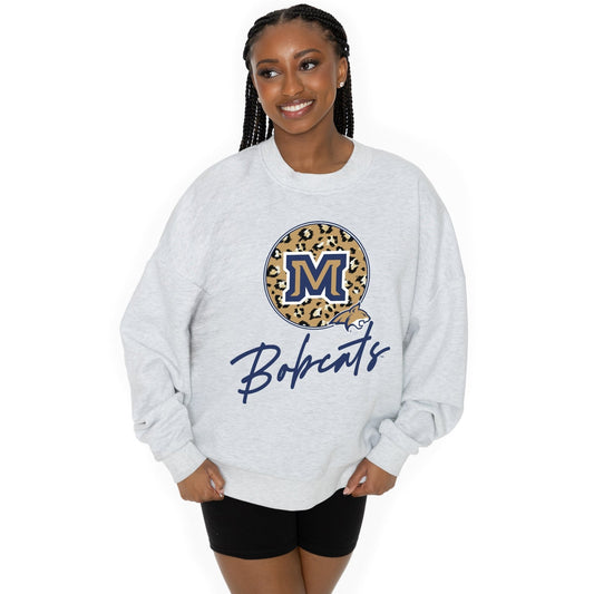 MONTANA STATE BOBCATS GOING WILD LONG SLEEVE UNISEX FIT PREMIUM FLEECE CREWNECK SWEATSHIRT WITH RIBBED KNIT NECKLINE, WRIST, AND WAISTBAND