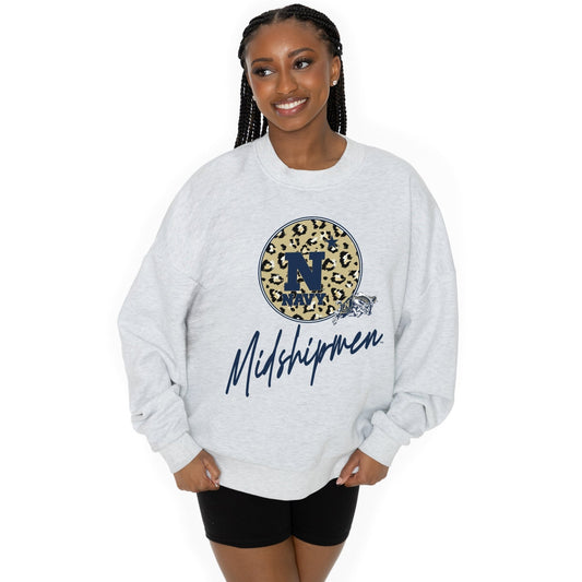US NAVY MIDSHIPMEN GOING WILD LONG SLEEVE UNISEX FIT PREMIUM FLEECE CREWNECK SWEATSHIRT WITH RIBBED KNIT NECKLINE, WRIST, AND WAISTBAND