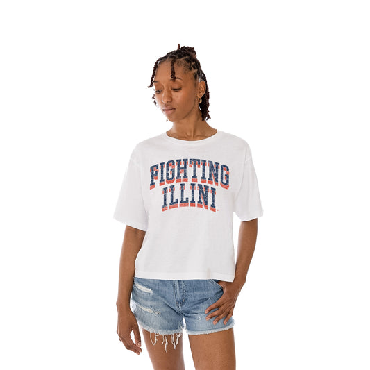 ILLINOIS FIGHTING ILLINI CLAIM TO FAME WOMEN'S MIDI-LENGTH, BOXY FIT CROPPED TEE WITH DROP SHOULDER SLEEVE