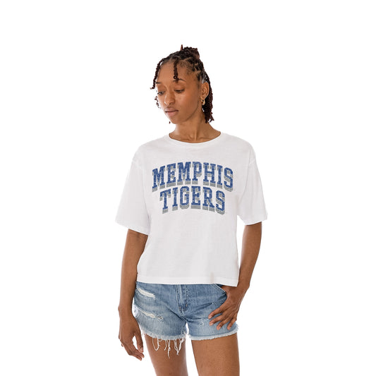 MEMPHIS TIGERS CLAIM TO FAME WOMEN'S MIDI-LENGTH, BOXY FIT CROPPED TEE WITH DROP SHOULDER SLEEVE