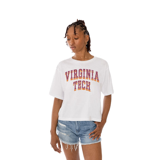 VIRGINIA TECH HOKIES CLAIM TO FAME WOMEN'S MIDI-LENGTH, BOXY FIT CROPPED TEE WITH DROP SHOULDER SLEEVE