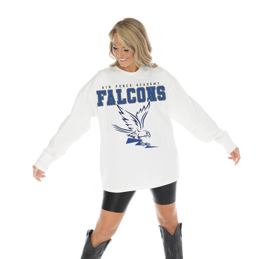 AIR FORCE FALCONS BIG GOALS OVERSIZED MIDWEIGHT LONG SLEEVE TEE WITH RIBBED NECKLINE AND CUFFS
