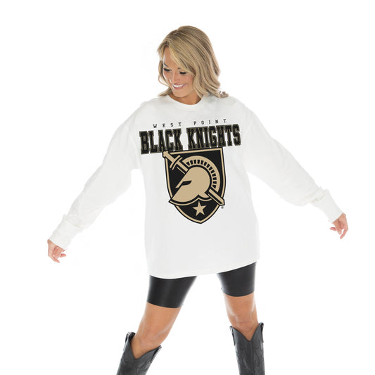 ARMY BLACK KNIGHTS BIG GOALS OVERSIZED MIDWEIGHT LONG SLEEVE TEE WITH RIBBED NECKLINE AND CUFFS
