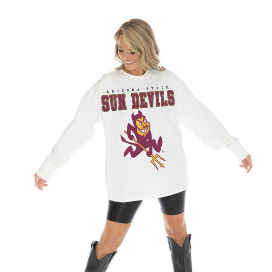 ARIZONA STATE SUN DEVILS BIG GOALS OVERSIZED MIDWEIGHT LONG SLEEVE TEE WITH RIBBED NECKLINE AND CUFFS