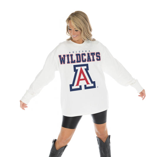 ARIZONA WILDCATS BIG GOALS OVERSIZED MIDWEIGHT LONG SLEEVE TEE WITH RIBBED NECKLINE AND CUFFS