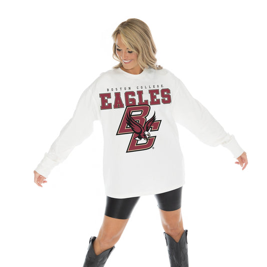 BOSTON COLLEGE EAGLES BIG GOALS OVERSIZED MIDWEIGHT LONG SLEEVE TEE WITH RIBBED NECKLINE AND CUFFS