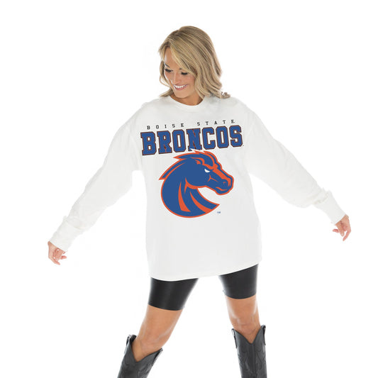 BOISE STATE BRONCOS BIG GOALS OVERSIZED MIDWEIGHT LONG SLEEVE TEE WITH RIBBED NECKLINE AND CUFFS