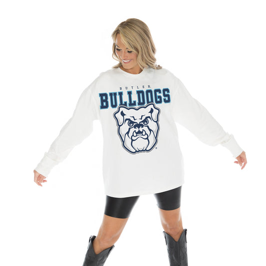 BUTLER BULLDOGS BIG GOALS OVERSIZED MIDWEIGHT LONG SLEEVE TEE WITH RIBBED NECKLINE AND CUFFS