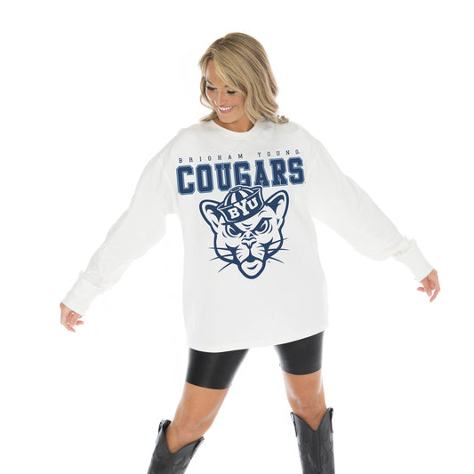 BYU COUGARS BIG GOALS OVERSIZED MIDWEIGHT LONG SLEEVE TEE WITH RIBBED NECKLINE AND CUFFS