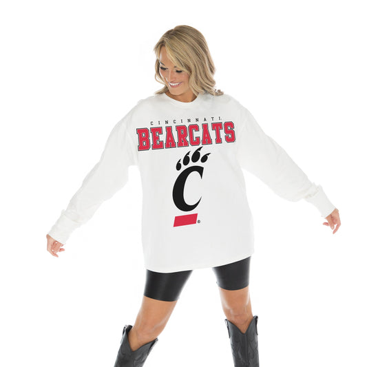 CINCINNATI BEARCATS BIG GOALS OVERSIZED MIDWEIGHT LONG SLEEVE TEE WITH RIBBED NECKLINE AND CUFFS